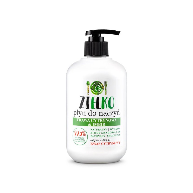 Naturalny płyn do mycia naczyń o świeżym zapachu trawy cytrynowej i imbiru. Wydajny, a jednocześnie bezpieczny i delikatny dla wrażliwej skóry dłoni. Skutecznie usuwa wszelki brud i tłuszcz z naczyń kuchennych, zastawy i sztućców, pozostawiając je czyste i lśniące.