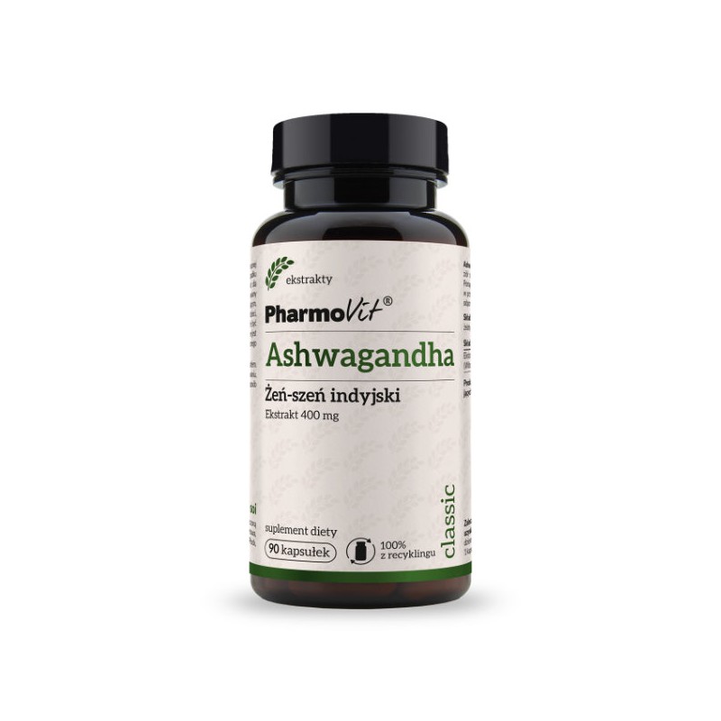 Ashwagandha (żeń-szeń indyjski) jest jednym z najbardziej znanych ziół stosowanych w ajurwedzie. Ma właściwości adaptogenne. Pomaga w utrzymaniu zdolności fizycznych i psychicznych w przypadku osłabienia, zmęczenia, utraty koncentracji. Zwiększa odporność organizmu na stres. Pomaga zachować zdrową skórę.